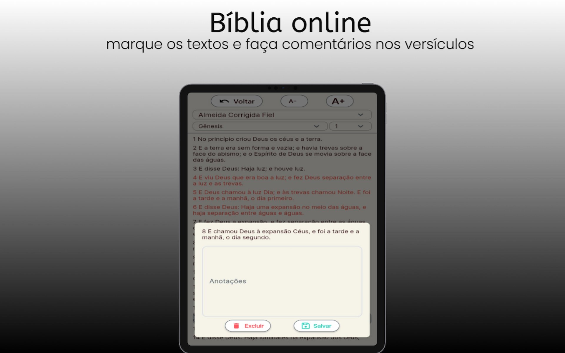 Substitua o bloco de notas! Registre inspirações, versículos e insights no momento que o Espírito Santo fala com você..