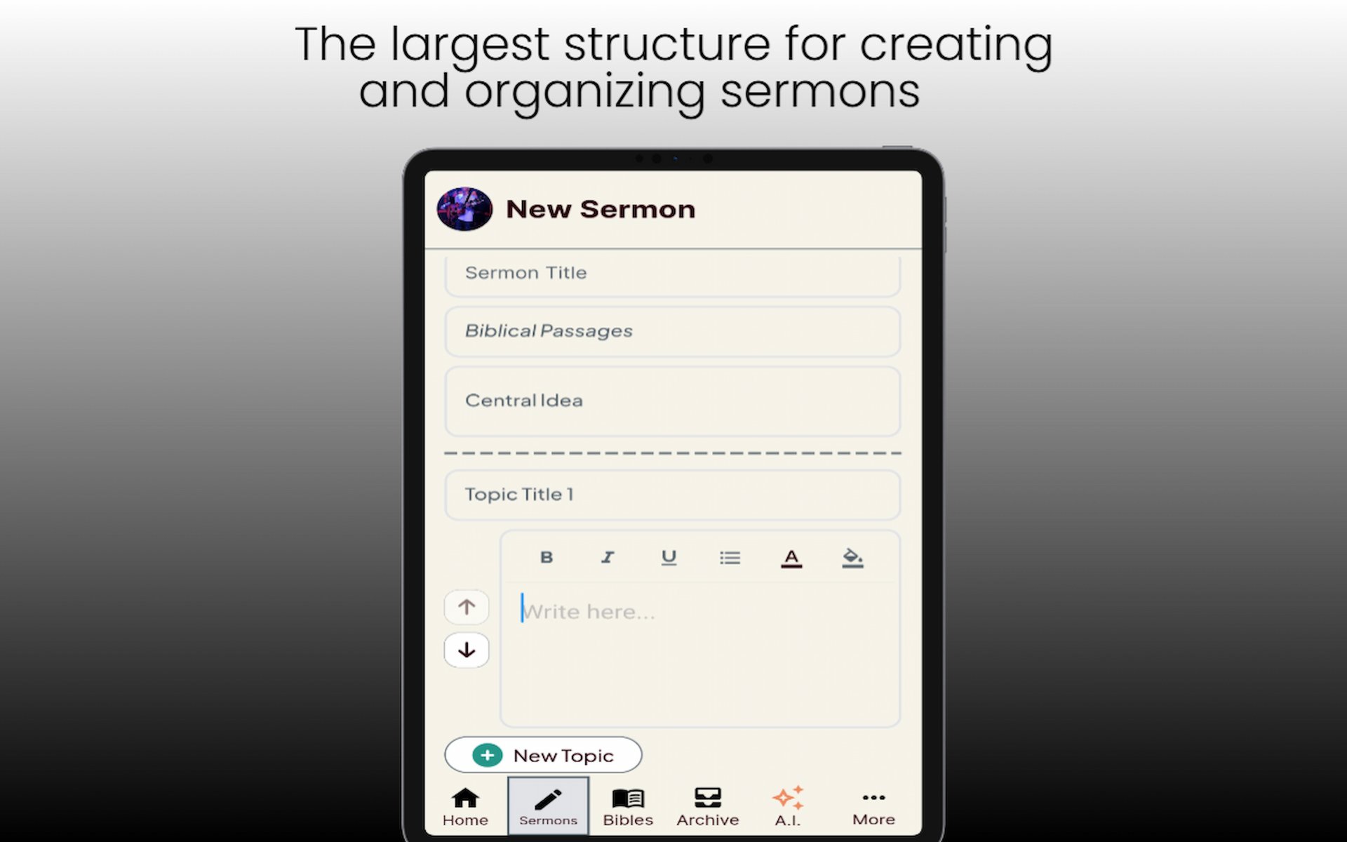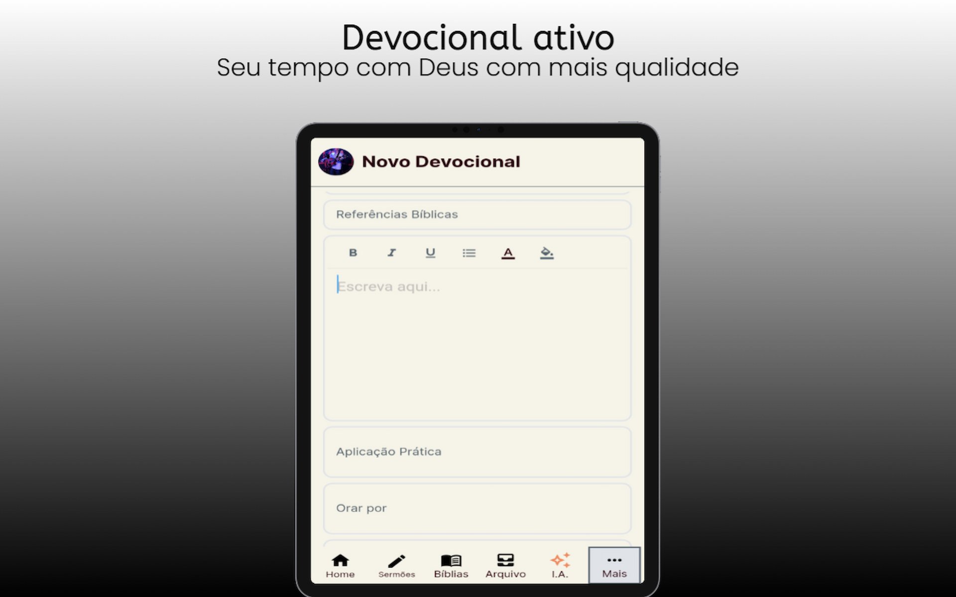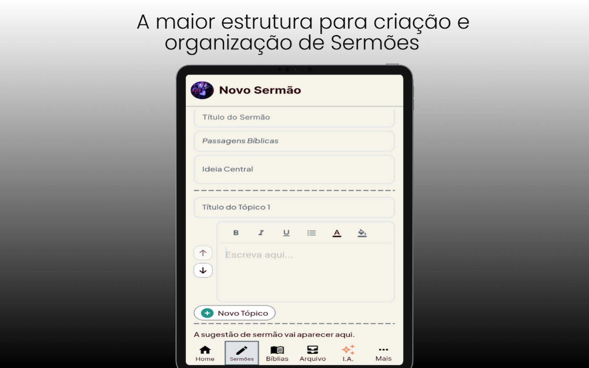 Dê adeus ao bloco de notas, estude com IA, crie e edite sermões com praticidade. Disponivel em 4 idiomas, Baixe agora!
